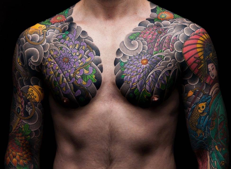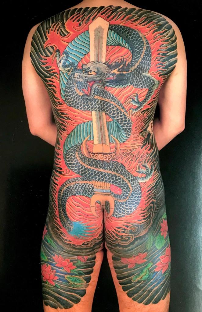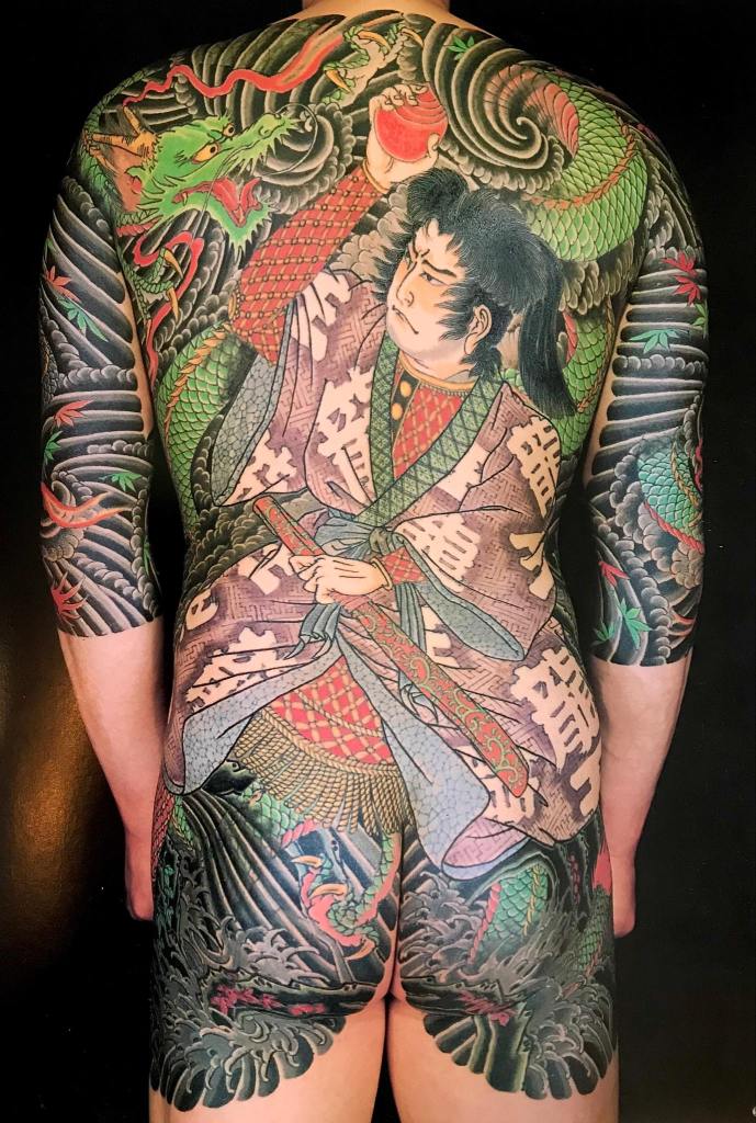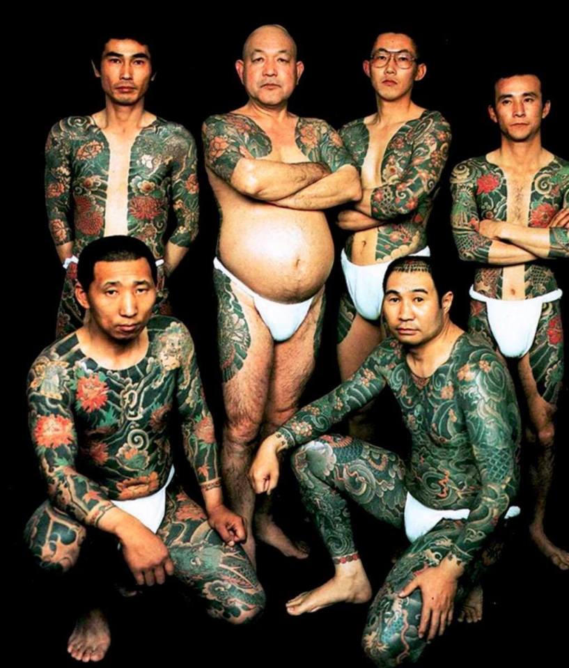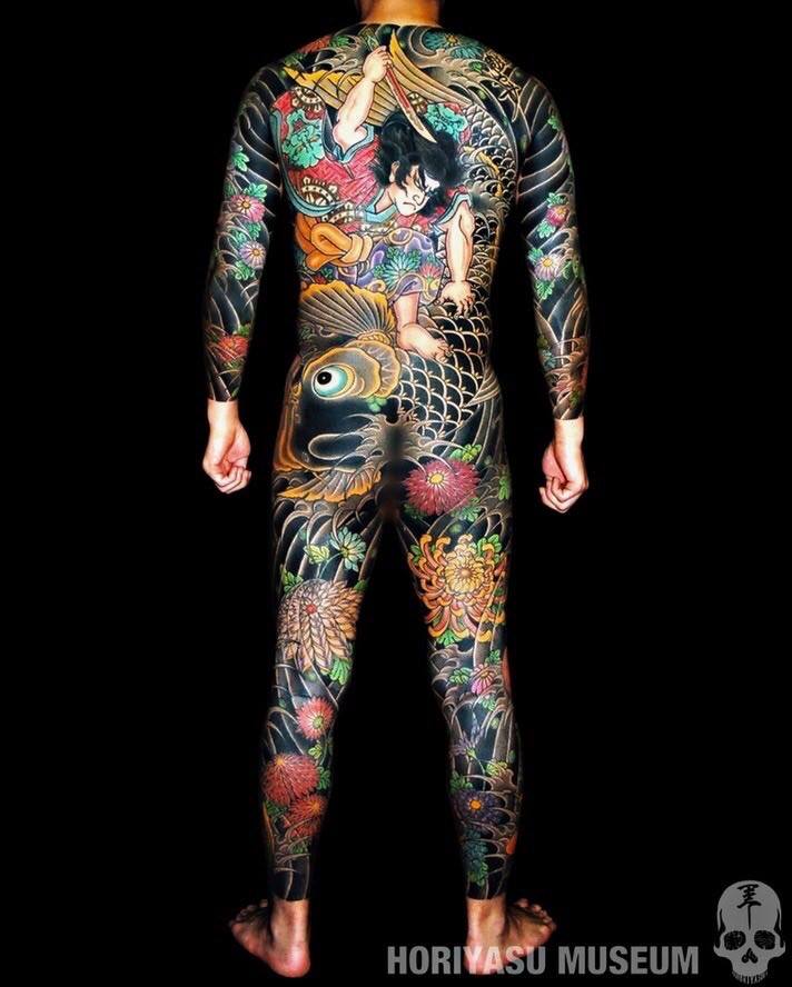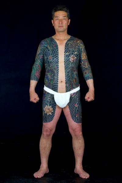Ficam livres apenas o pescoço, mãos e pés. Não é uma regra, mas as vezes a genitália também é tatuada, usando designs como serpentes ou Tengu que tem um nariz longo, haha.