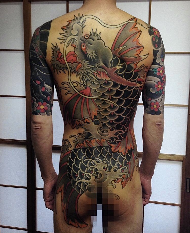 Uma grande parte da fama da carpa na tatuagem japonesa vem de uma lenda na qual ela se transforma em um dragão.