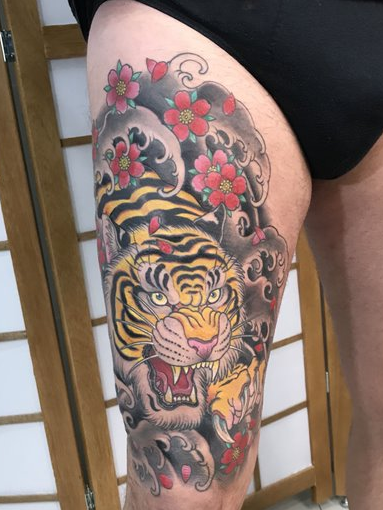 A tatuagem de tigre japonês é famosa por seu estilo no mundo todo . O design de tigre de tamanho grande bem desenhado é impressionante! Você pode até sentir a sensação de ser tão intimidante quanto um tigre real!